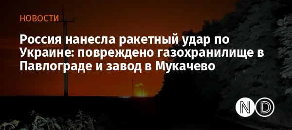 Россия ночью нанесла массированный комбинированный удар по всей Украине. В Павлоградском районе Днепропетровской области повреждены газораспределительная станция и газохранилище. Для атаки использовались дроны-камикадзе «Герань».