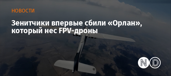Украинским военнослужащим удалось впервые уничтожить российский беспилотник «Орлан», оборудованный как носитель FPV-дронов. Об этом сообщили в пресс-службе 118 ОМБр.