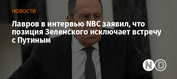 Министр иностранных дел России Сергей Лавров в интервью американскому телеканалу NBC News заявил о том, что позиции Владимира Путина и Владимира Зеленского сейчас слишком далеки для того, чтобы встреча состоялась.