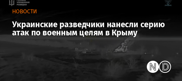 Спецподразделение Главного управления разведки Минобороны Украины нанесло серию ударов по военным объектам России в Крыму. Видео боевой операции разведчиков опубликовано на официальной странице Телеграм-канала ГУР МОУ.