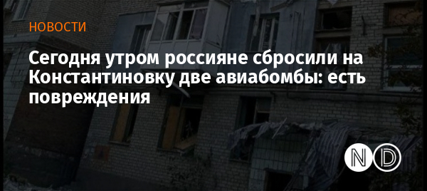 Во вторник, 26 августа в 05:10 российские оккупационные войска нанесли два удара авиабомбами ФАБ-250 по городу Константиновка Донецкой области. Об этом сообщила городская военная администрация.