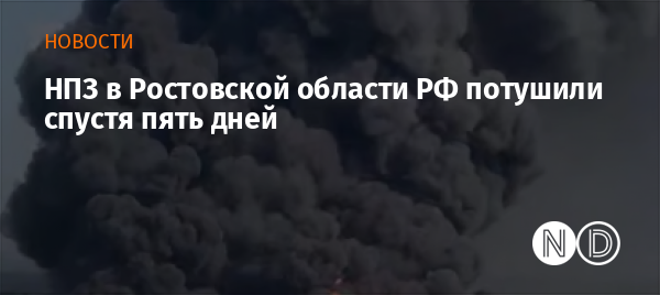 На Новошахтинском нефтеперерабатывающем заводе в Ростовской области РФ ликвидировали пожар после атаки БПЛА. Пожар был потушен спустя пять дней. Об этом сообщил врио губернатора Юрий Слюсарь.