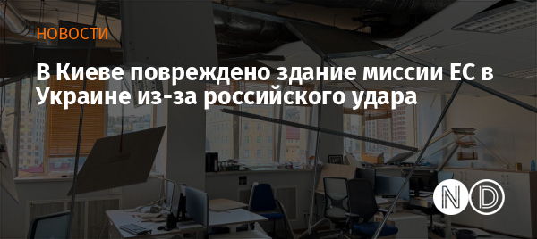 Здание миссии Евросоюза в Украине было повреждено в результате российского удара по Киеву. Фото: Андрей Сибига/Х