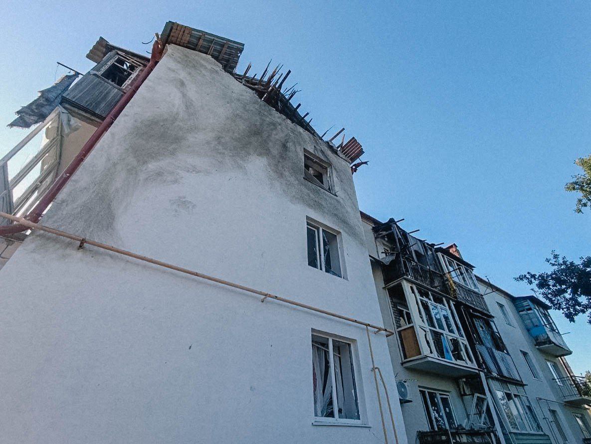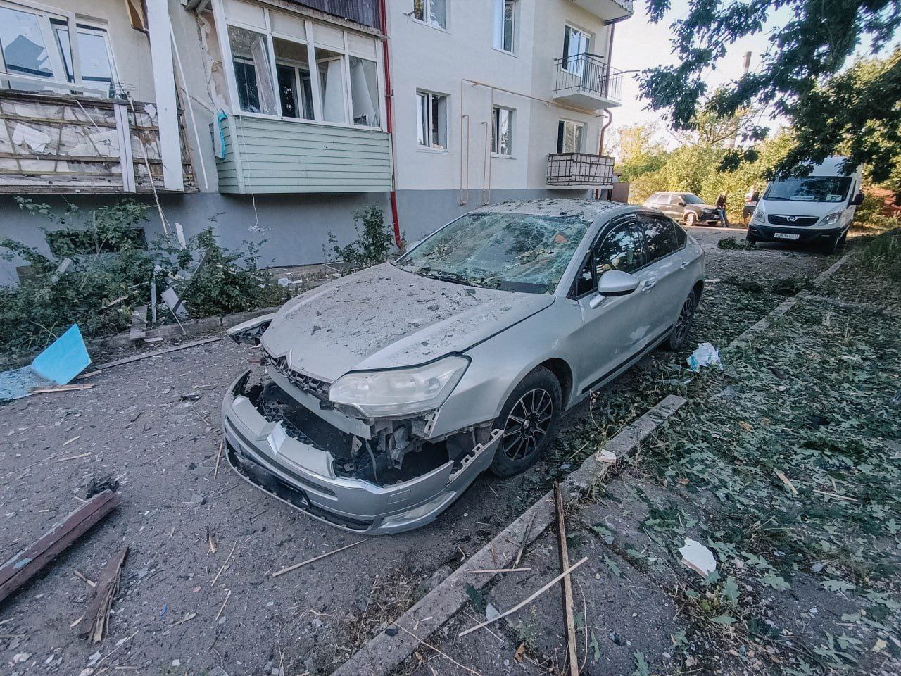 По дому ударил беспилотник. В некоторых квартирах выбиты стёкла, повреждены машины вокруг дома.