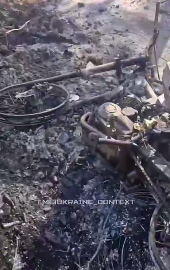 «Железный скелет» мотоцикла оккупантов после прилета ВСУ.