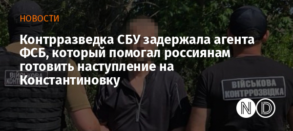 Военная контрразведка Службы безопасности Украины задержала агента ФСБ, который помогал российским оккупантам планировать новые наступательные операции на позиции ВСУ вблизи города Константиновка Донецкой области. Об этом сообщили в пресс-службе СБУ.