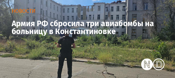Константиновская больница в Донецкой области подверглась прицельной атаке российских войск. Как сообщил глава Донецкой областной военной администрации Вадим Филашкин, 4 сентября противник сбросил на медучреждение три авиабомбы.