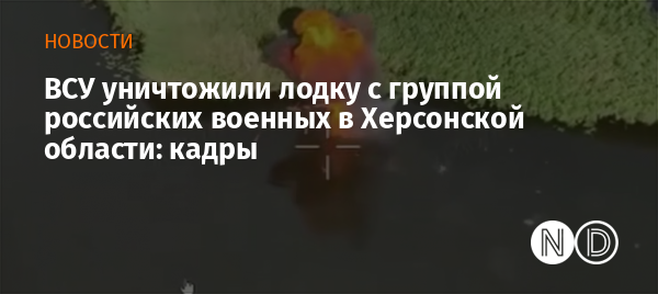 Удар по лодке с группой военных РФ на Херсонщине. Фото: кадр из видео