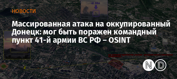 Вечером 8 сентября в результате массированной атаки поражен командный пункт 41-й общевойсковой армии ВС РФ в оккупированном Донецке. Об этом сообщили украинские OSINT-аналитики Dnipro Osint.