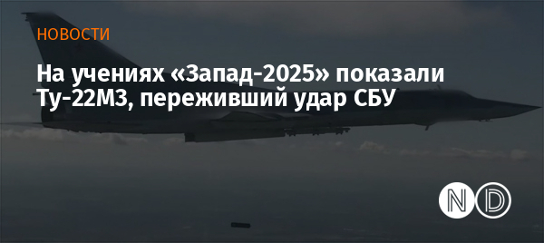 Во время учений «Запад-2025» уцелевший после операции «Паутина» российский Ту-22М3 выполнил бомбометание одной авиабомбы ОФАБ-250 без УМПК. Фото сверхзвукового ракетоносца-бомбардировщика опубликовал военный Telegram-канал «Полковник ГШ».