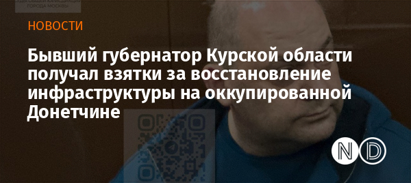 Экс-глава Курской области признал, что получал взятки не только за контракты по фортификации границы с Украиной, но и в ходе восстановления инфраструктуры на оккупированной территории Донецкой области.