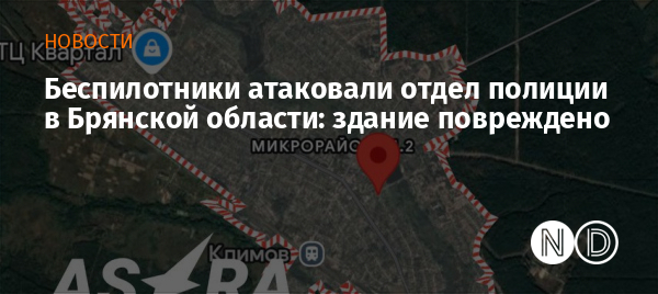Вечером 13 сентября беспилотники атаковали здание отдела полиции на улице Первомайская в городе Климово Брянской области РФ. Об этом сообщили в Телеграм-канале ASTRA со ссылкой на источники в экстренных службах региона.