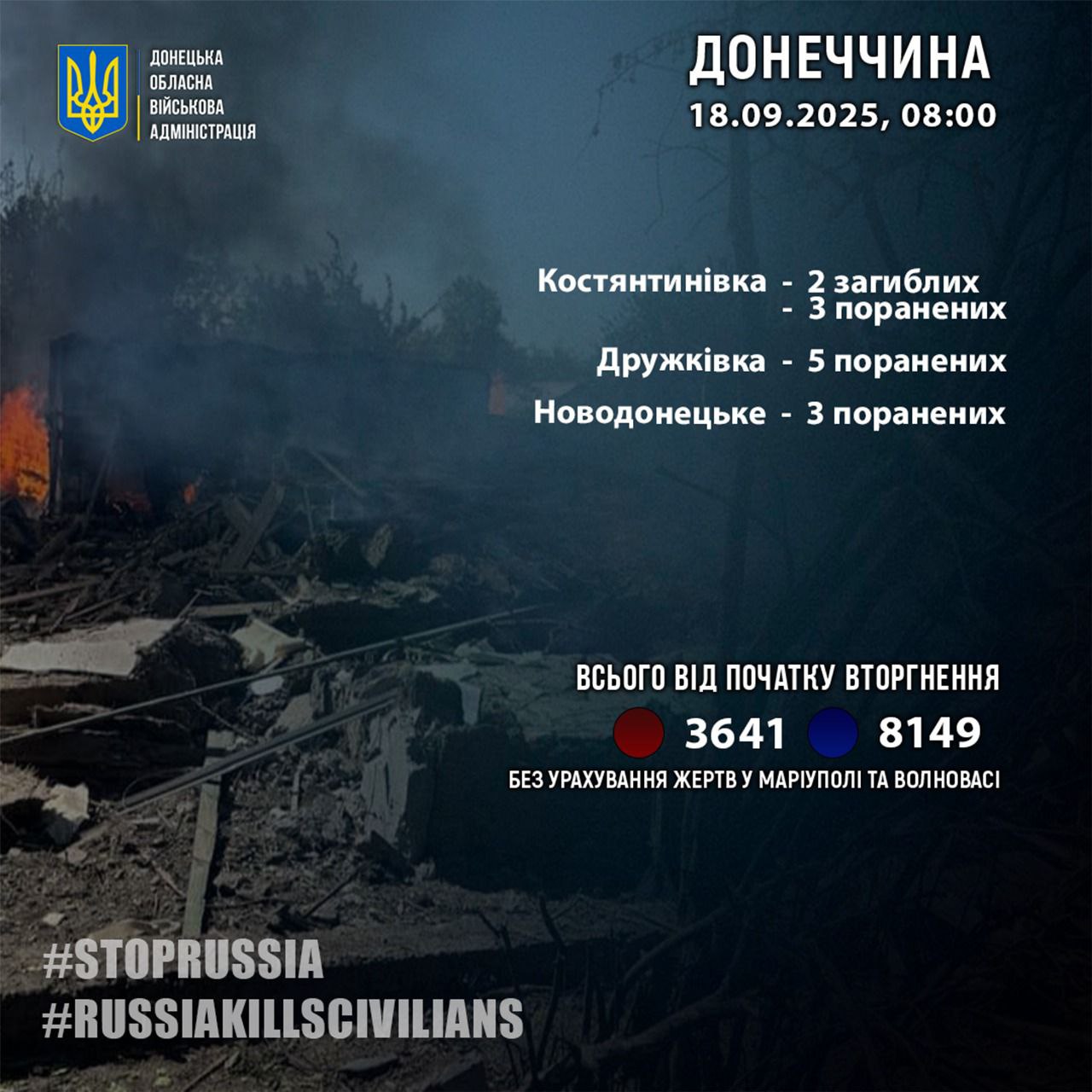 С начала полномасштабного вторжения Россия уже убила 3641 жителя Донетчины и ранила 8149 человек. В статистику не входят данные о потерях в Мариуполе и Волновахе.