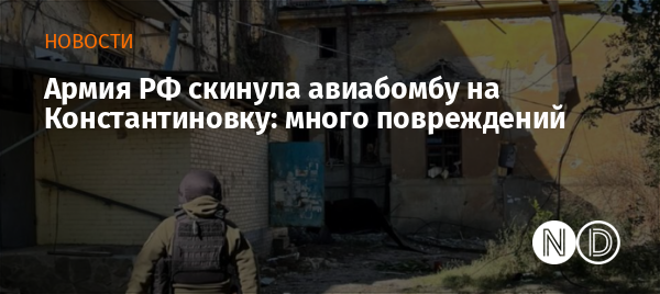 Российская армия в пятницу, 3 октября, обстреляла Константиновку Донецкой области с помощью авиационной бомбы. Много повреждений. Об этом сообщил начальник Константиновской городской военной администрации Сергей Горбунов.
