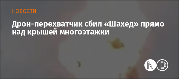 На записи видно, как беспилотник резко снижает высоту и направляется в сторону гражданского здания. В этот момент за ним на высокой скорости следует украинский зенитный дрон-перехватчик, который поражает цель буквально над домом.