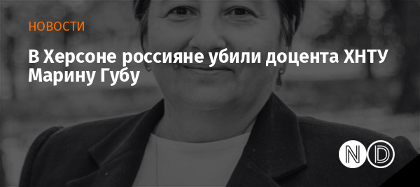 Утром в Херсоне российские военные убили Марину Губу — доцента кафедры государственного управления и местного самоуправления Херсонского национального технического университета. Об этом сообщил начальник Херсонской ОВА Александр Прокудин.