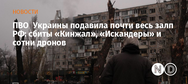 «В целом радиотехническими войсками Воздушных Сил обнаружено и осуществлено сопровождение 632 средств воздушного нападения — 36 ракет и 596 БпЛА различных типов: 596 ударных БпЛА типа Shahed, Гербера; 5 аэробаллистических ракет Х-47М2 "Кинжал"; 23 крылатых ракет Х-101/Искандер-К; 4 баллистических ракет "Искандер-М"; 4 управляемых авиационных ракет Х-59/69», — указывается в сообщении.