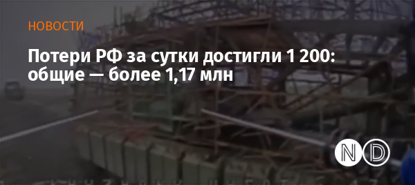Потери российских оккупационных войск за прошедшие сутки составили 1 200 человек, доведя общее количество армии РФ до 1 176 230. Об этом говорится в свежем отчёте Генерального штаба ВСУ.