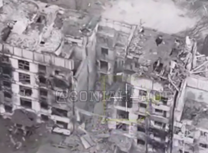 Позднее операторы зафиксировали новое скопление российских военных, которые пытались укрыться в подвале другой многоэтажки на севере населенного пункта. После подтверждения целей украинский МиГ-29 вновь нанес удар — также двумя корректируемыми авиабомбами HAMMER.