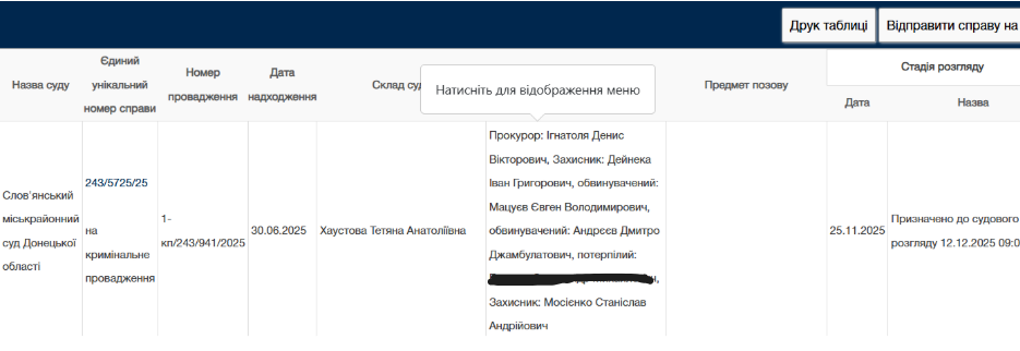 25 ноября на сайте Славянского суда появилась повестка: обоим мужчинам предлагается явиться 12 декабря на 09:00 на подготовительное судебное заседание, которое пройдет дистанционно через сервис EASYCON. В объявлении указаны их последние известные адреса в Горловке. С момента публикации повестка считается врученной, что соответствует нормам украинского уголовного процесса.