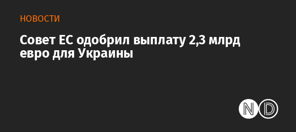 Совет Европейского Союза одобрил 2,3 млрд евро для Украины в рамках финансового инструмента Ukraine Facility. Вскоре в государственный бюджет поступит 2,1 млрд. евро кредитных средств и 200 млн. евро гранта.