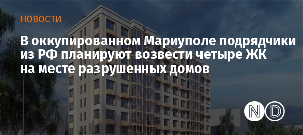 Подрядчики из РФ заявили, что планируют построить четыре жилых комплекса на месте разрушенных домов во временно захваченном Россией Мариуполе. Квартиры в новостройках будут продавать под ипотеку. Об этом сообщили в пресс-службе Мариупольского городского совета.