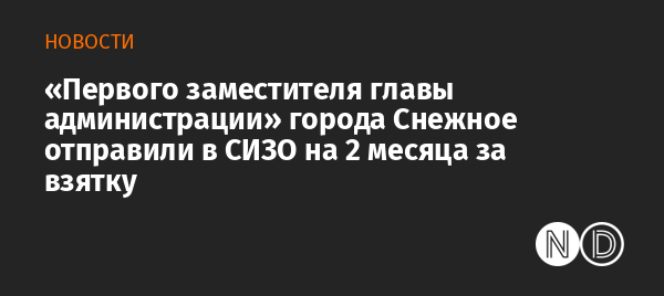 Оккупационные власти в начале декабря задержали при получении взятки в особо крупном размере «первого заместителя главы администрации» города Снежное Донецкой области. Его отправили в СИЗО на два месяца. Об этом сообщают местные паблики.