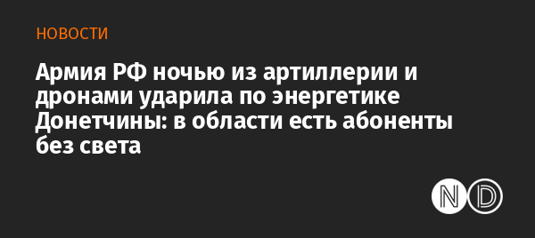 Ночью 6 января российские войска из артиллерии и дронами нанесли удары по энергетическим объектам в Донецкой области. Об этом сообщили в пресс-службе «Укрэнерго».