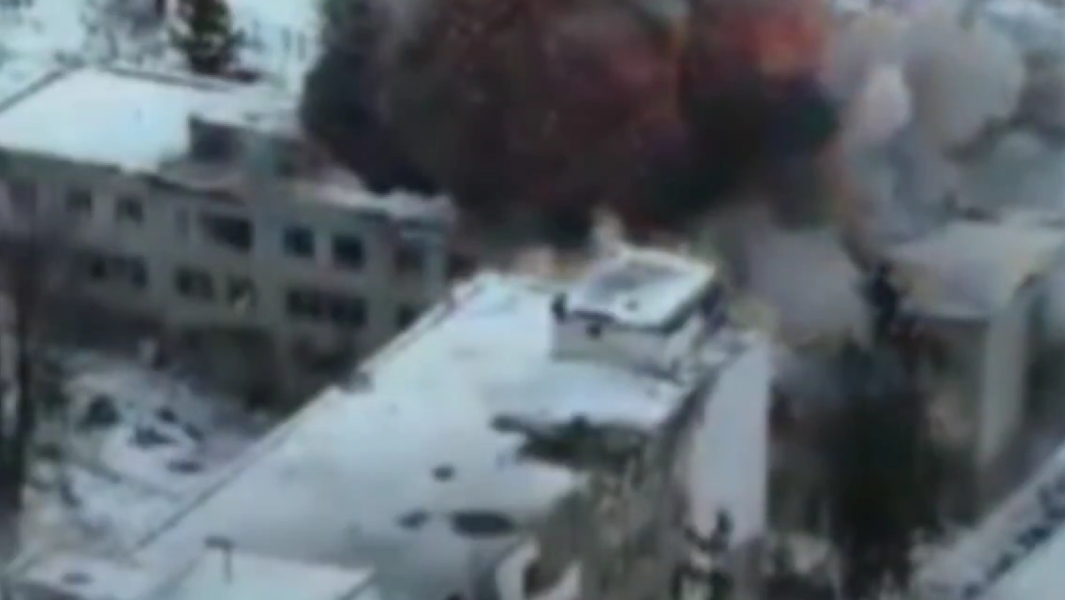 Момент «прилета» по зданию с оккупантами в Купянске.
