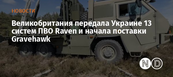 Помимо этого, Лондон начал поставки Украине комплексов ПВО Gravehawk. На данный момент украинская сторона уже получила две такие системы, а в перспективе планируется передать еще 15 комплексов.