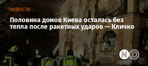 Мэр Киева Виталий Кличко сообщил, что из-за повреждений критической инфраструктуры города в результате массированной атаки российских войск половина многоквартирных домов столицы — почти 6 тысяч — осталась без тепла. Также в городе наблюдаются перебои с водоснабжением.