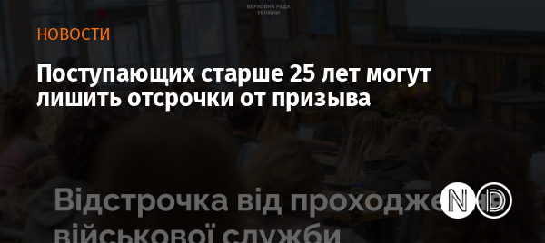 По словам главы Комитета по вопросам образования Сергея Бабака, мужчины в возрасте 25 лет и старше, поступающие в высшие, профессионально-технические или фаховые училища, не будут иметь права на отсрочку.