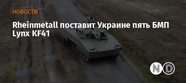 Немецкий оборонный концерн Rheinmetall объявил о поставке Украине пяти боевых машин пехоты Lynx KF41. Передача техники осуществляется от имени правительства Германии, сообщает проект German Aid to Ukraine.