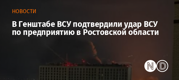 В Генштабе ВСУ подтвердили удар ВСУ по предприятию в Ростовской области. Фото: скриншот