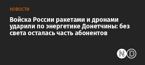 Ночью и утром 13 января российские оккупанты совершили ракетно-дроновую атаку на энергетические объекты в Донецкой области. Об этом сообщили в пресс-службе «Укрэнерго».
