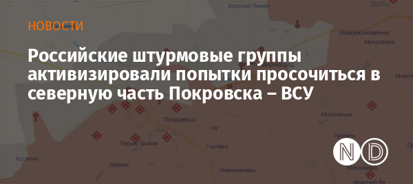 «Противник активизировал попытки просочиться при помощи штурмовых групп в северную часть Покровска, что выше железной дороги. Однако Силы обороны останавливают усилия противника. В Мирнограде украинские подразделения контролируют северную часть города и не дают оккупантам заводить тяжелую технику в его южную часть. Продолжаются поисково-ударные действия, чтобы не допустить дальнейшего продвижения врага. Украинские подразделения обеспечиваются необходимыми средствами для поддержания боеспособности в условиях низких температур. Для снабжения используются тяжелые дроны и наземные роботизированные комплексы», – рассказали в ГВ «Восток».