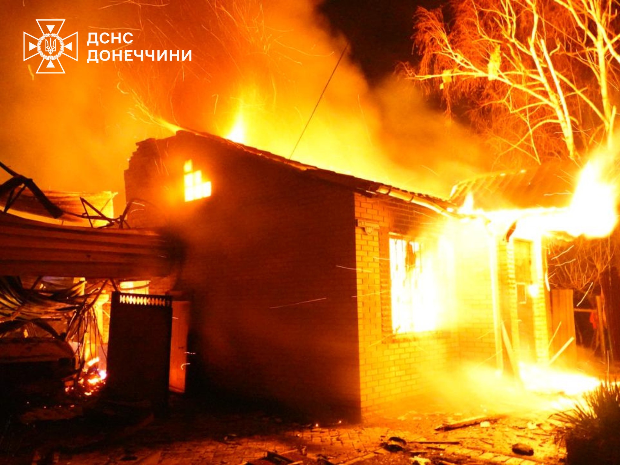 В результате атаки загорелись частный дом и две хозяйственные постройки.