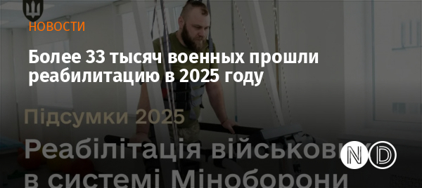 В 2025 году в учреждениях здравоохранения системы Министерства обороны Украины реабилитационную помощь получили более 33 тысяч военнослужащих. Об этом сообщили в оборонном ведомстве.
