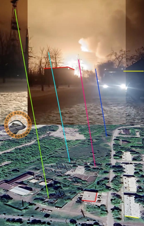 Аналитики OSINT-канала «КиберБорошно» установили точное место удара по складу боеприпасов в оккупированном Дебальцево.