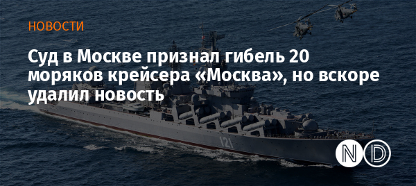 В пресс-релизе 2-го Западного окружного военного суда в Москве появилась информация, что крейсер «Москва» был атакован украинскими ракетами в апреле 2022 года, также подтверждена гибель 20 российских моряков, но вскоре публикацию удалили. Об этом передает «Медиазона».
