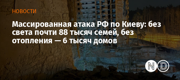 Кроме перебоев с электричеством, столица столкнулась с серьезными проблемами в системе теплоснабжения. По словам мэра Киева Виталия Кличко, в результате массированной атаки и повреждения критической инфраструктуры без отопления вновь остались почти 6 тысяч домов.