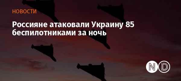 За ночь РФ атаковала Украину 85 ударными БПЛА, сообщили Воздушные силы ВСУ.