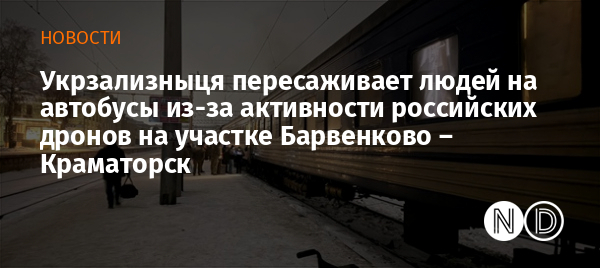 Укрзализныця зафиксировала активность российских БПЛА вблизи инфраструктуры между Запорожьем и Днепром. Учитывая это, трансфер в обе стороны будет осуществляться автобусами. Об этом в Facebook сообщает Укрзализныця.