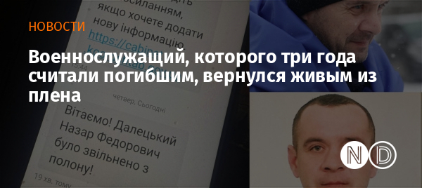Сегодня из плена был освобожден военнослужащий, который более трёх лет, с сентября 2022 года, считался погибшим. Об этом сообщает Ukraine context.