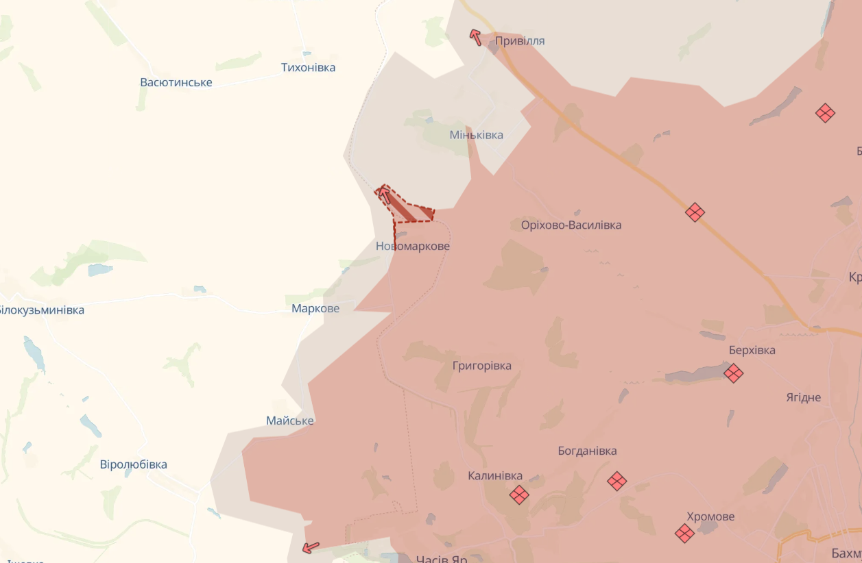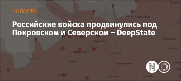 Армия РФ продвинулась вблизи города Покровск и села Новомарково Донецкой области. Об этом сообщили аналитики DeepState.
