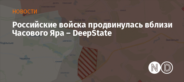 Армия РФ продвинулась возле города Часов Яр Донецкой области. Об этом сообщили аналитики DeepState.