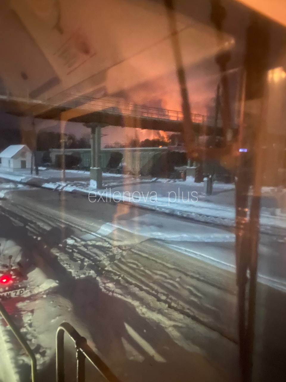 Последствия атаки на нефтебазу в Великих Луках. Фото: соцсети