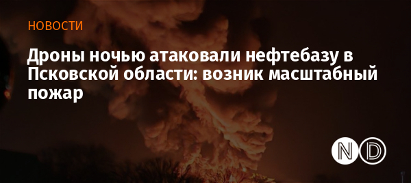 Губернатор Псковской области Михаил Ведерников подтвердил атаку БПЛА на город и пожар на нефтебазе.