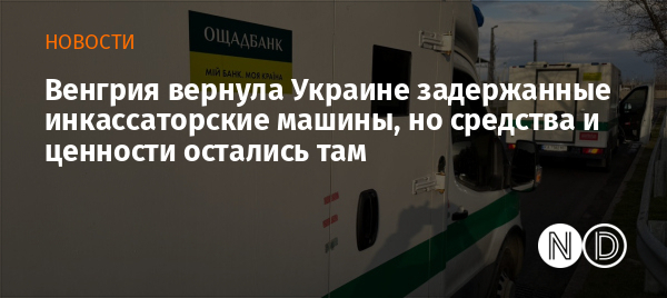 12 марта инкассаторские автомобили Ощадбанка, незаконно задержанные в Венгрии, вернули представителям банка и украинским дипломатам. Об этом передали в ведомстве финучреждения.